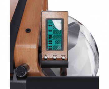 Консоль гребного тренажёра SmartGym имеет 8 уровней регулировки педалей и показывает время, расстояние, калории, пульс и обороты в минуту. Система нагрузки является водной: чем больше вы зальёте в бак воды, тем больше будет нагрузка. Транспортировочные ролики позволяют легко перемещать тренажёр, а его размер в сложенном виде составляет 60 x 56,5 x 210 см.