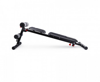 Валики из вспененного материала регулируются на 8 уровней по высоте и обеспечивают надёжную фиксацию во время тренировки. Большие ножки скамьи для фитнеса прорезинены по всей площади, чтобы защитить пол, а противоскользящая конструкция всегда обеспечивает устойчивое положение. Скамья также имеет складную и компактную конструкцию, чтобы сэкономить место в доме.