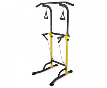 Турник-брусья DFC G007Y желтого цвета позволяет выполнять упражнения на разные группы мышц. Вес пользователя не должен превышать 110 килограмм.