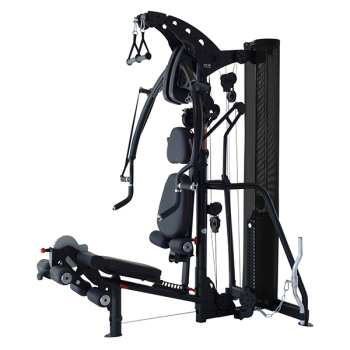 Одинарный весовой стек на 98 кг защищен кожухом из прочной сетки, что снижает шум во время занятий. В конструкцию входят верхний и боковой тяговые блоки, основная жимовая рама, срединный блок (над спинкой), блок с подушкой для скручиваний, жимовые стрэп-рукояти и тренажер для сгибания и разгибания ног.