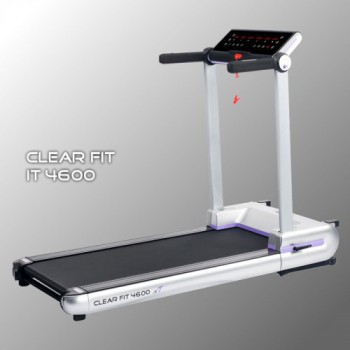 Электрическая беговая дорожка Clear Fit серии iT 4600 – уникальная компактная конструкция, широкое полотно, мощный мотор и автоматический угол наклона. Оптимальные технические характеристики: скорость до 16 км/ч, электрический наклон до 15%, широкое полотно 46х125 см и надежная конструкция, идеально подходят для домашних тренировок любого профиля. Инновационная система складывания позволяет хранить как в горизонтальном, так и в вертикальном положении: в шкафу, кладовке, за дверью, под кроватью. Габариты хранения: 32х70х160 см. Надежная эргономичная конструкция рассчитана на вес пользователя до 120 кг., рост пользователя для ходьбы не ограничен, для бега от 12 км/ч рекомендован до 180 см. Адаптивная система амортизации из 10 эластомеров различной плотности – оберегает суставы и связки, снижает нагрузку на позвоночник, обеспечивает комфорт при любой скорости движения. Мощный двигатель обеспечивает бесперебойную и бесшумную работу, а механизм конструкции устойчивость и безопасность. Большая информативная консоль, сенсорная клавиатура и контрастные LED окна дисплея, отображающие все необходимые параметры, обеспечивают удобное управление тренировкой. Предустановленный пакет программ и стандартных тренировок повышает мотивацию и дает возможность проводить индивидуальные занятия по собственной программе. Встроенные колонки обеспечивают воспроизведение звукозаписи с электронных носителей через Bluetooth-соединение.