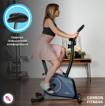 Представляем вам велотренажер U20 от CARBON FITNESS - современное и эффективное средство для поддержания здоровья и физической формы прямо у вас дома. Высокопрочная рама с антикоррозийной обработкой и покраской в один слой обеспечивает долговечность и надежность тренажера, а магнитная система нагружения optiSTEP™ с 8 уровнями нагрузки позволяет вам настроить интенсивность тренировки под свои потребности. Маховик BioFusion весом 14 кг обеспечивает плавное и комфортное кручение педалей, а однокомпонентный литой педальный узел и прорезиненные педали с регулируемыми ремешками обеспечивают безопасность и комфорт во время занятий. Комфортабельное сиденье анатомической формы и возможностью регулировки положения по вертикали позволяет настроить тренажер под ваши индивидуальные параметры. Стандартный руль с оплеткой из пенорезины обеспечивает удобство и комфорт во время тренировки. Измерение пульса осуществляется сенсорными датчиками на поручнях, а LCD консоль с яркой индикацией отображает информацию о времени, скорости, дистанции, калориях, пульсе и одометре, обеспечивает вам полный контроль над вашими тренировками. Велотренажер CARBON FITNESS U20 предлагает несколько программ, включая быстрый старт и ручной режим, чтобы сделать ваши тренировки разнообразными и интересными. Русский и английский языки интерфейса делают использование тренажера удобным для всех пользователей. Дополнительные удобства, такие как подставка под планшет, транспортировочные ролики и компенсаторы неровностей пола, делают использование велотренажера еще более удобным и практичным. Размер в рабочем состоянии составляет 83x51x122 см, вес нетто - 18,5 кг, а максимальный вес пользователя до 120 кг. Погрузитесь в мир активного образа жизни с велотренажером CARBON FITNESS U20 и достигните своих фитнес-целей с удовольствием и комфортом. Ключевые преимущества CARBON FITNESS U20: • магнитная система нагружения optiSTEP™ с 8 уровнями нагрузки; • маховик BioFusion весом 14 кг; • LCD консоль с яркой индикацией; • габариты тренажера составляют: 83x51x122 см; • максимальный вес пользователя до 120 кг.